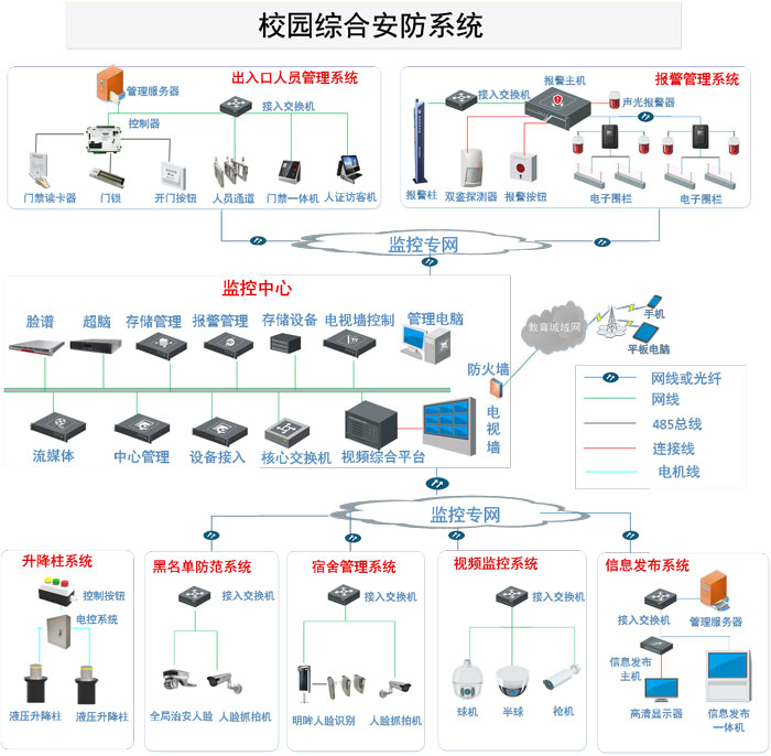 現在各地市的大(dà)學都普(pǔ)遍存在著校園麵積大、場地分散,學(xué)生(shēng)眾多(duō),校園周邊的環境複雜等特點,隨著近年來校園暴力事件和突發事故的增加,傳統(tǒng)的人力巡查已不能滿足校園安全管理的需求,越(yuè)來越多的學校(xiào)開始考慮通過校園網絡視頻監控係統(tǒng)的實施(shī)來建設平安校園。在大(dà)中城市校園中普(pǔ)遍推廣以視頻監控、防盜報警、安全防範為主的技術防範措施,是構築學校治安防控體係的重要內容。校園網絡視頻監控係(xì)統,是在原有的以太網傳輸(shū)係統的基礎上,用雙(shuāng)絞線(xiàn)或者光纖進(jìn)行視頻數據傳輸,克服了學校(xiào)內部分複雜地(dì)形對(duì)傳統模擬線路鋪設的限製,傳輸質量穩定,降低了網絡建設成本,大大增強(qiáng)了監控係統的靈活(huó)性、便利性和可擴充性。本設計以教學行業的特點作為設(shè)計(jì)依據,結合學校的(de)係統(tǒng)需求,用好的設計方案體現較高的性能價格比,是設計的指(zhǐ)導思想,也是設計的基本出發點和追求(qiú)的目標。